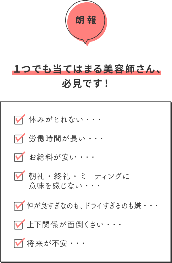 他店にはない待遇もあり、美容業界を変えていけると思ったからです。